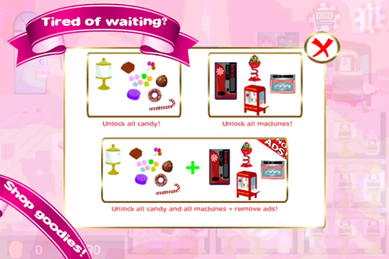 -Unlock lot's of sweet candy like: yummy chocolate, cute gummy bears, fun bubble gum, amazing lollipops and candy saga cane! And special machines like: cupcake maker, popcorn machine, drink vending machine and more!
