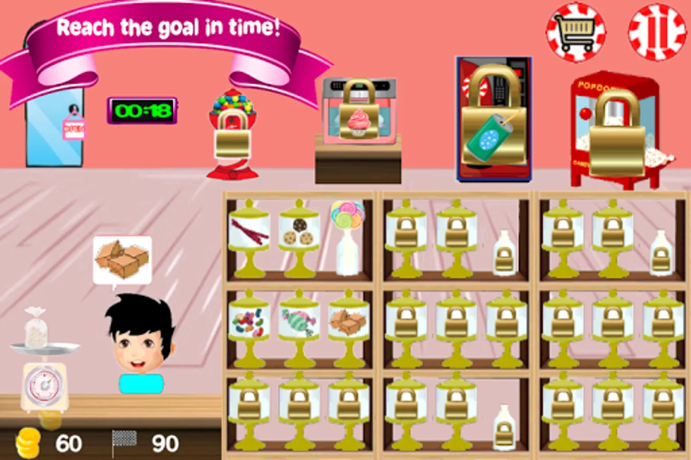 -Make your money satisfying your client's orders, touch the candy jars or machines. Don't leave your clients angry give them sweet candy! Don't crush their orders!