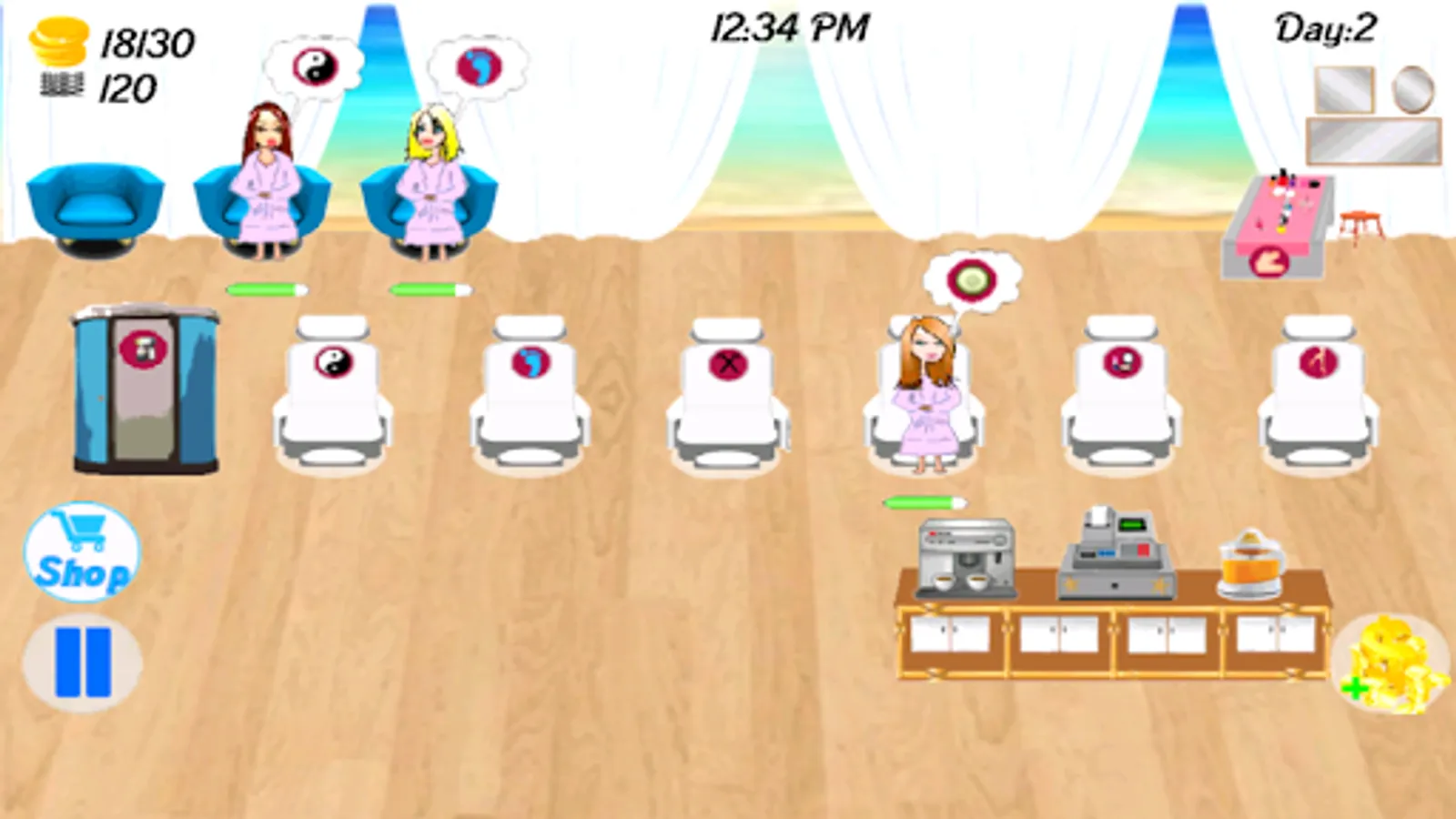Welcome to your luxurious spa and beauty salon on the beach! Manage your own spa salon. A-list famous celebrities come to this spa to pamper themselves! This spa is known for the best beauty treatments and by the famous celebrity owner, YOU! The best spa of the summer.