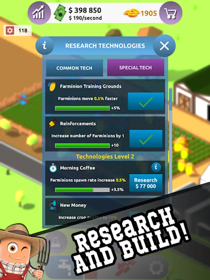 Tap your way up to have the most powerful and richest farm in the world!