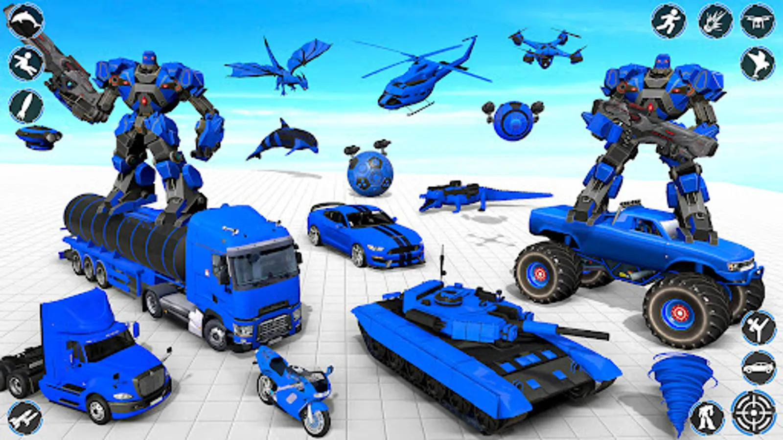 Understand the objectives of this robot car game: robot simulator and clear the missions of this robot wali game. Start the first level of this angry dolphin robot transforming: robot attack and shoot with robotic gun. Transform robot into sea animal like dolphin and rescue city hospital, buildings, school and shopping malls in this flying car robot game: new robot transforming game. Use different special robot powers like kick, punch, attack and shoot to kill opponent robot in this robot wala game: shark robot. Enjoy car robot in water to shoot the shark robots and whale robots in this dolphin game robot war: robot transforming game. Empower your robot transforming game experience to clear the area from enemy robots with robot game. Complete the challenges of this dolphin robot transform game and attack on submarine robot in the sea water to win the stages of game. Unique interface and smooth control of this robot war will make the user addictive player of this animal robot battle: robot car game.