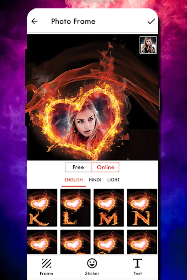 Everyone loves to create images using their name alphabets. Make a picture wallpaper with fiery text photo using love frame fire editor.Editing made easy and fast with our fire text editing app.