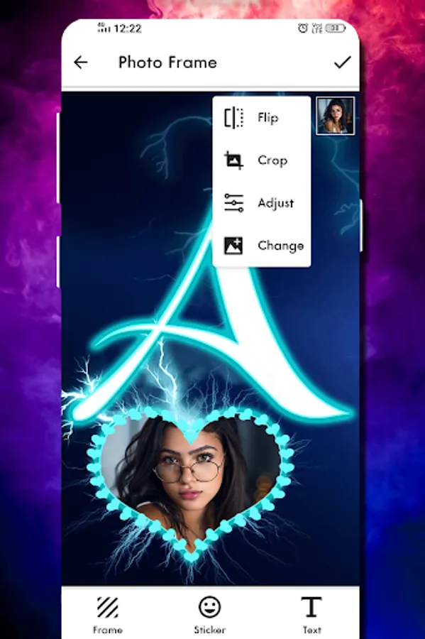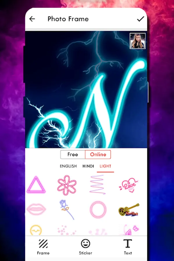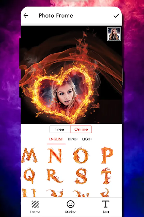 Choose your favorite alphabet and add it to your fire photo frame. You can choose the alphabet from your initials and use it as name art on fire flame text-photo editor.
