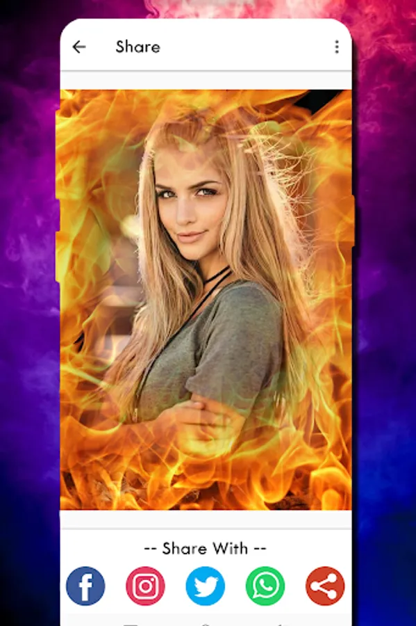 Set your photos on fire with this beautiful application. All you have to do is to select the effect and your photo from the camera roll or gallery. Choose fiery frames that suit your photos perfectly and wrap them up.