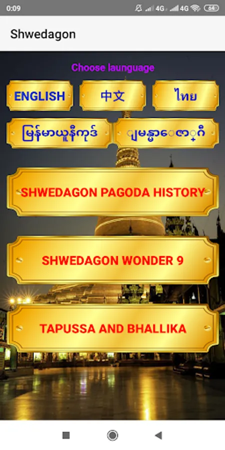 Shwedagon pagoda is the one of the first pagoda in the world.It is located in Yangon,Myanmar.This application is the history and guide for Shwedagon pagoda.You can read it with four language.English,Thai,China and Myanmar.