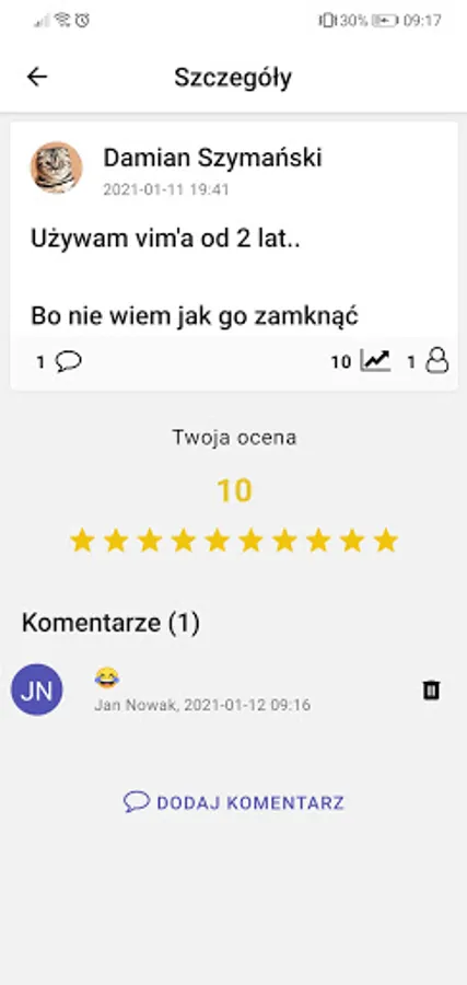 Golden Lips is an application that lets you share jokes, funny photos, or words of wisdom with friends. Everyone can rate and comment on posts and each month the highest-rated jokes are displayed on the list of the best. The user can also view statistics of his account in the form of an average that counts all of the posts added. The application is available in two themes, light and dark. Change is possible with one click in the menu.