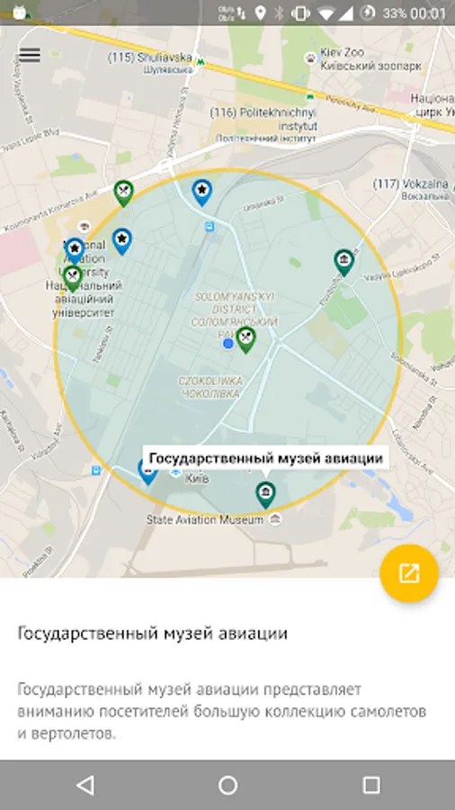 Don't know where to go? Look at interesting places near you, see "Places Nearby" or find something interesting in one of the categories in this section "Places". Symbols next to the photo, show how far from this place, and the built-in map will help you to quickly find out how to get where you need to.