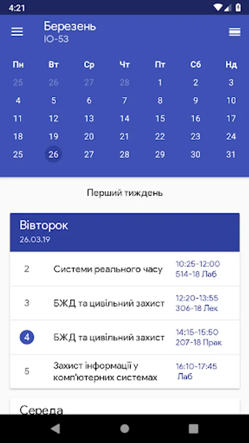 Schedule KPI - a powerful helper application to simplify the life of the student. All you need to do is enter the name of the required group.