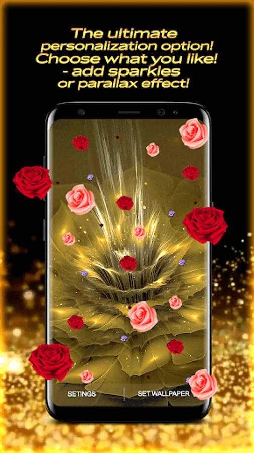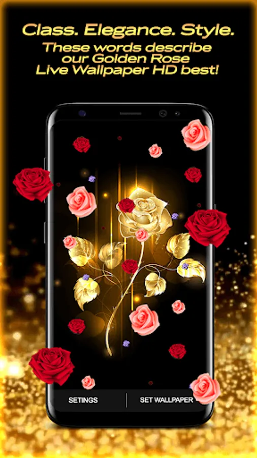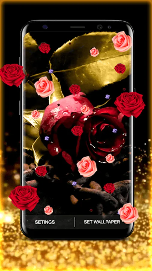 Find many beautiful roses live wallpapers for mobile phones to decorate your home screens! A few taps for the set up of a luxurious wallpaper design and you're done! Add magnificent golden roses as your screensaver and make your phone look brand new!