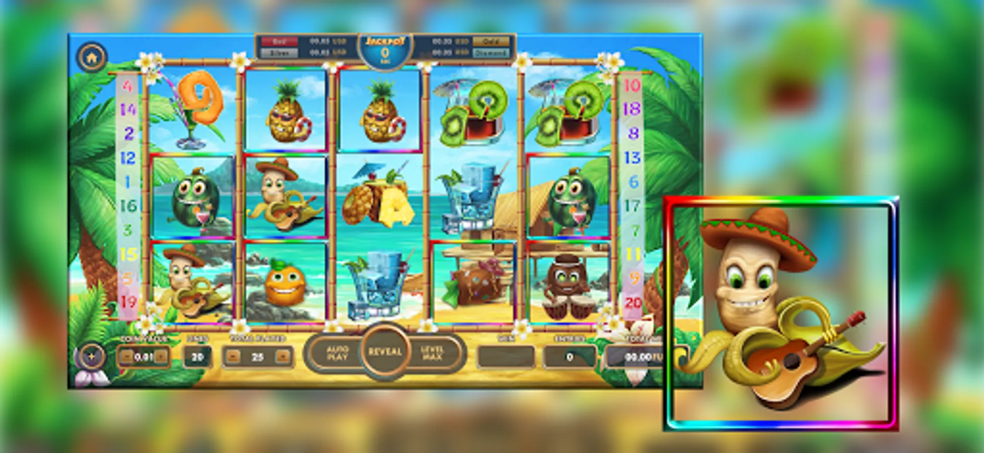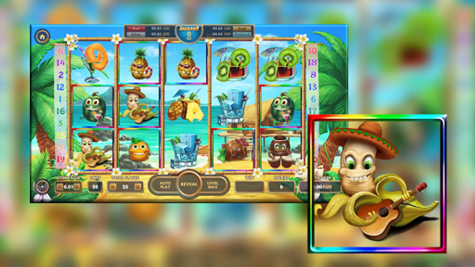 Although the gameplay is similar to actual casino slot machine games, it does not reflect the actual gameplay of any real casino slot machine!