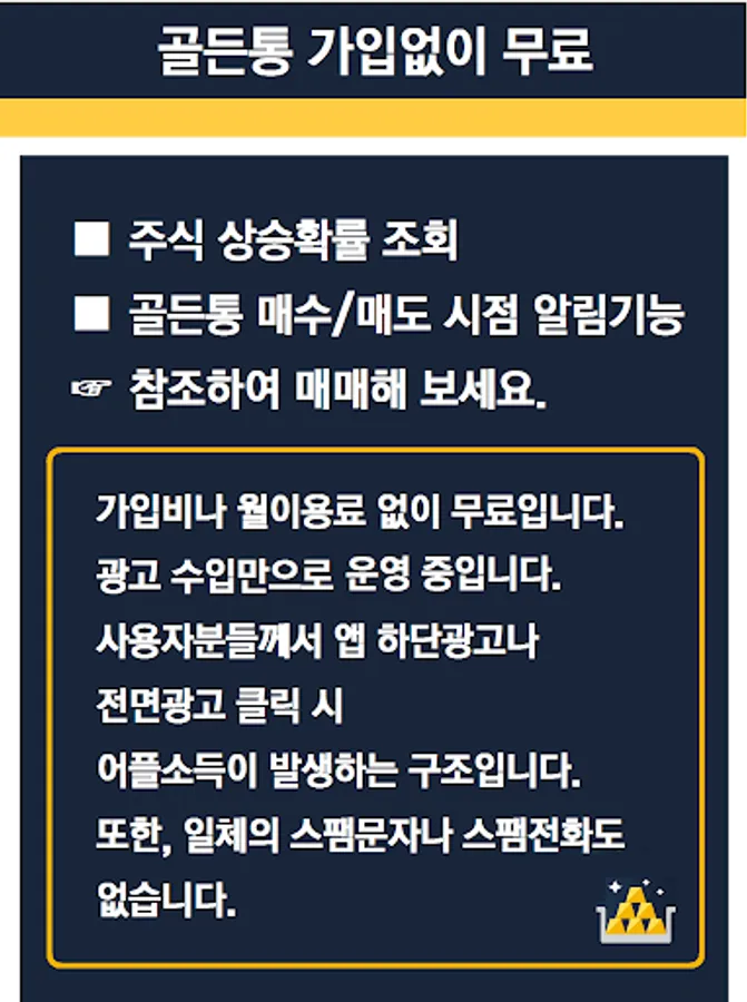 Accordingly, Golden Tong provides buy/sell alerts and provides virtual trading signals to users rather than actual trading.
