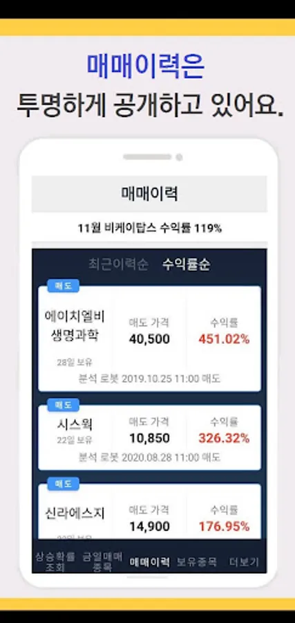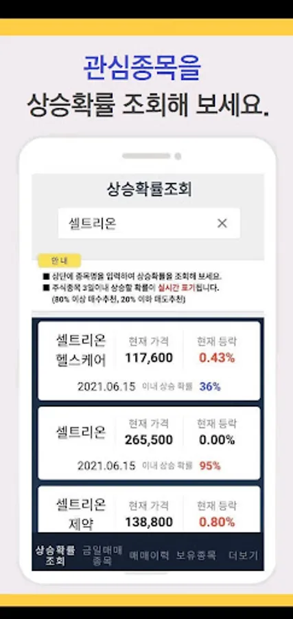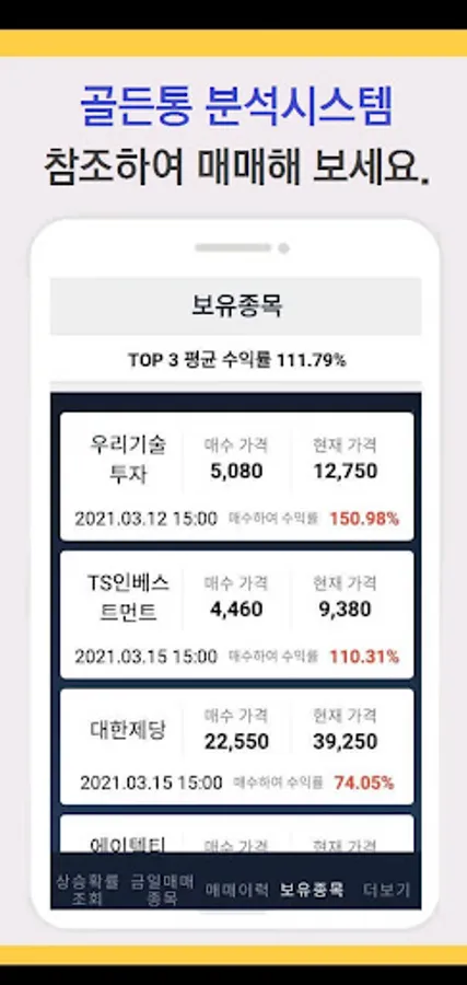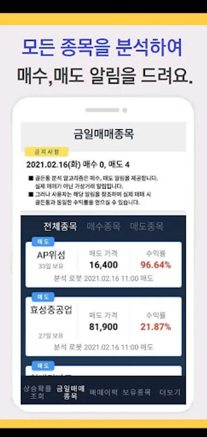 ※ After analyzing all stocks on the KOSPI/KOSDAQ, a buy signal for stocks with a high probability of rising is generated.