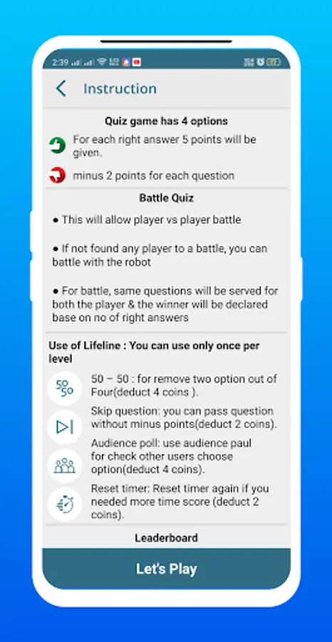 Creative Quiz App is Based On Multiple Choice Questions, Know As MCQ. And It Upload Weekly New Test For Every Stream and These test are for those who Challenged their Learning