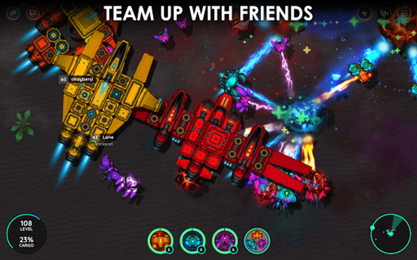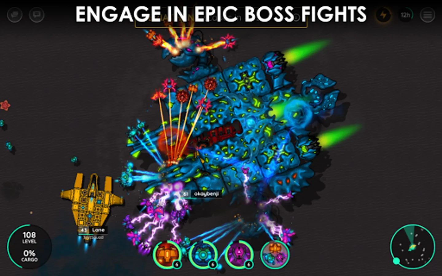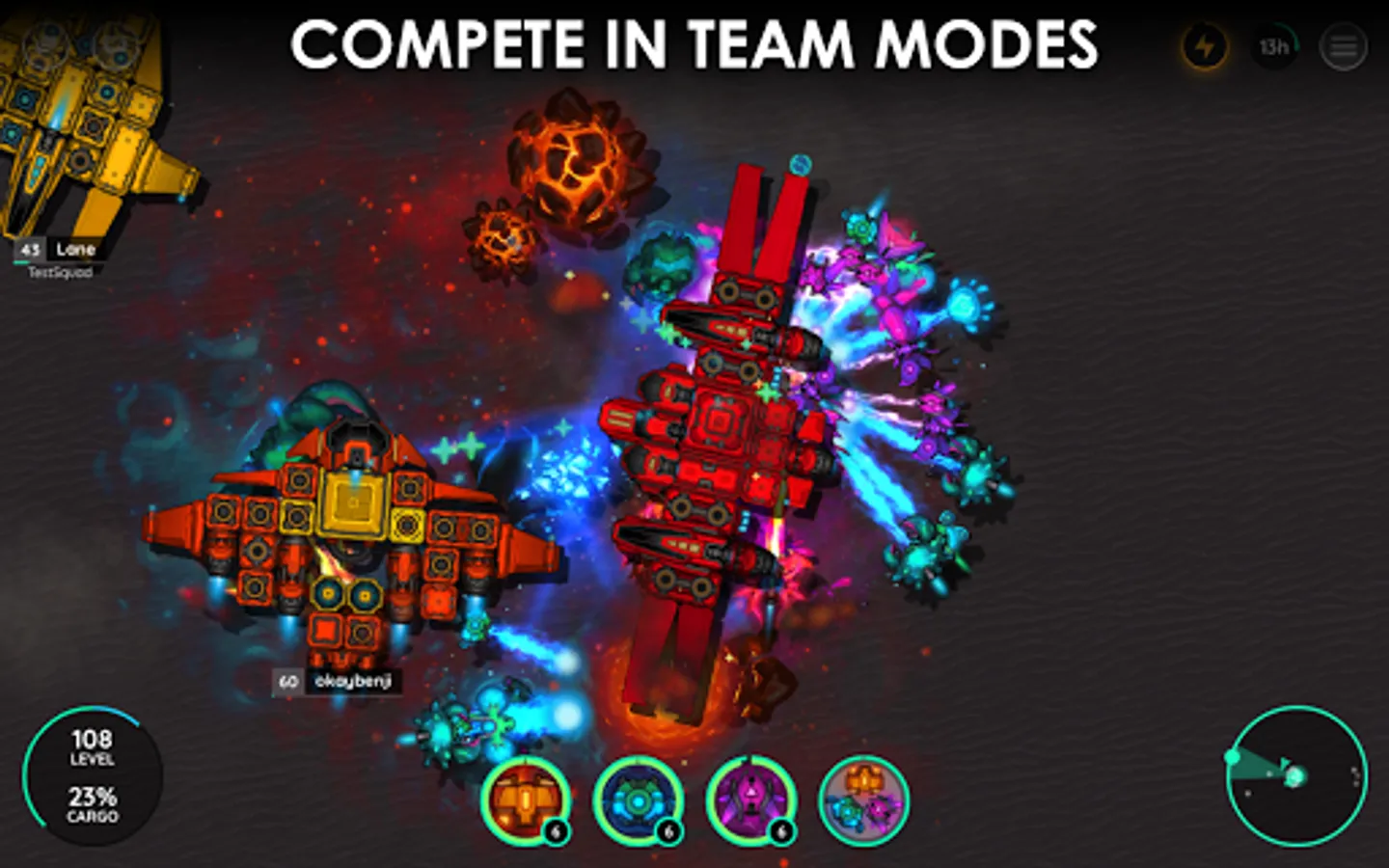 Command your hordes of drones in epic space battles against ancient guardians for valuable resources. Compete with other pilots for the most valuable deposits of crystals, gems, elemental cores and scrap spacecraft parts, or team up to take on the most fearsome of guardians, bosses and other enemies.