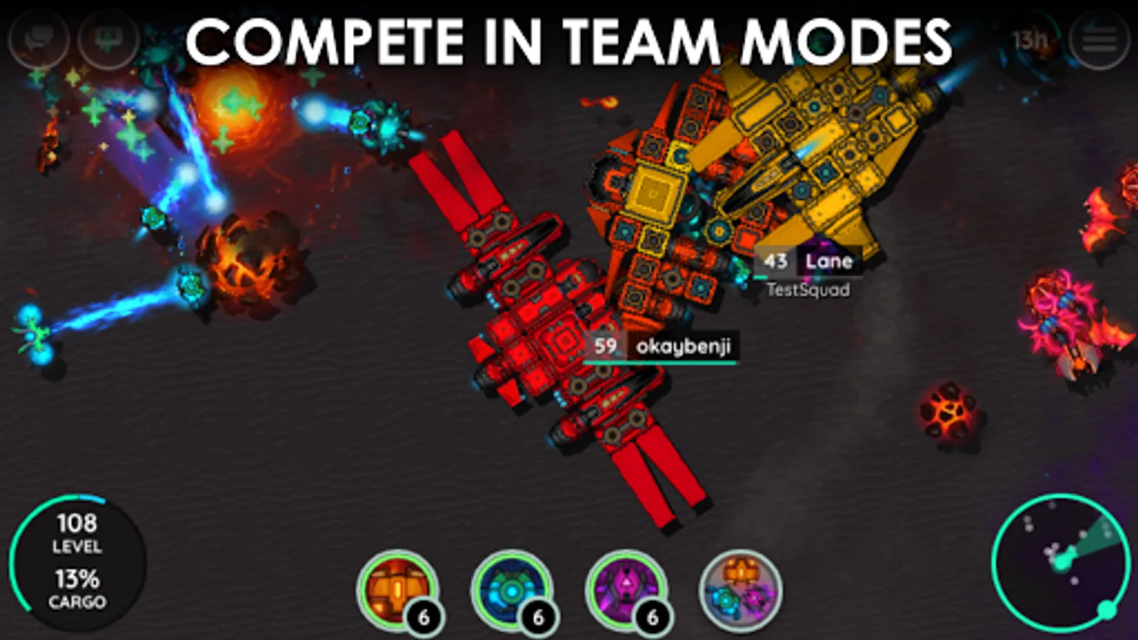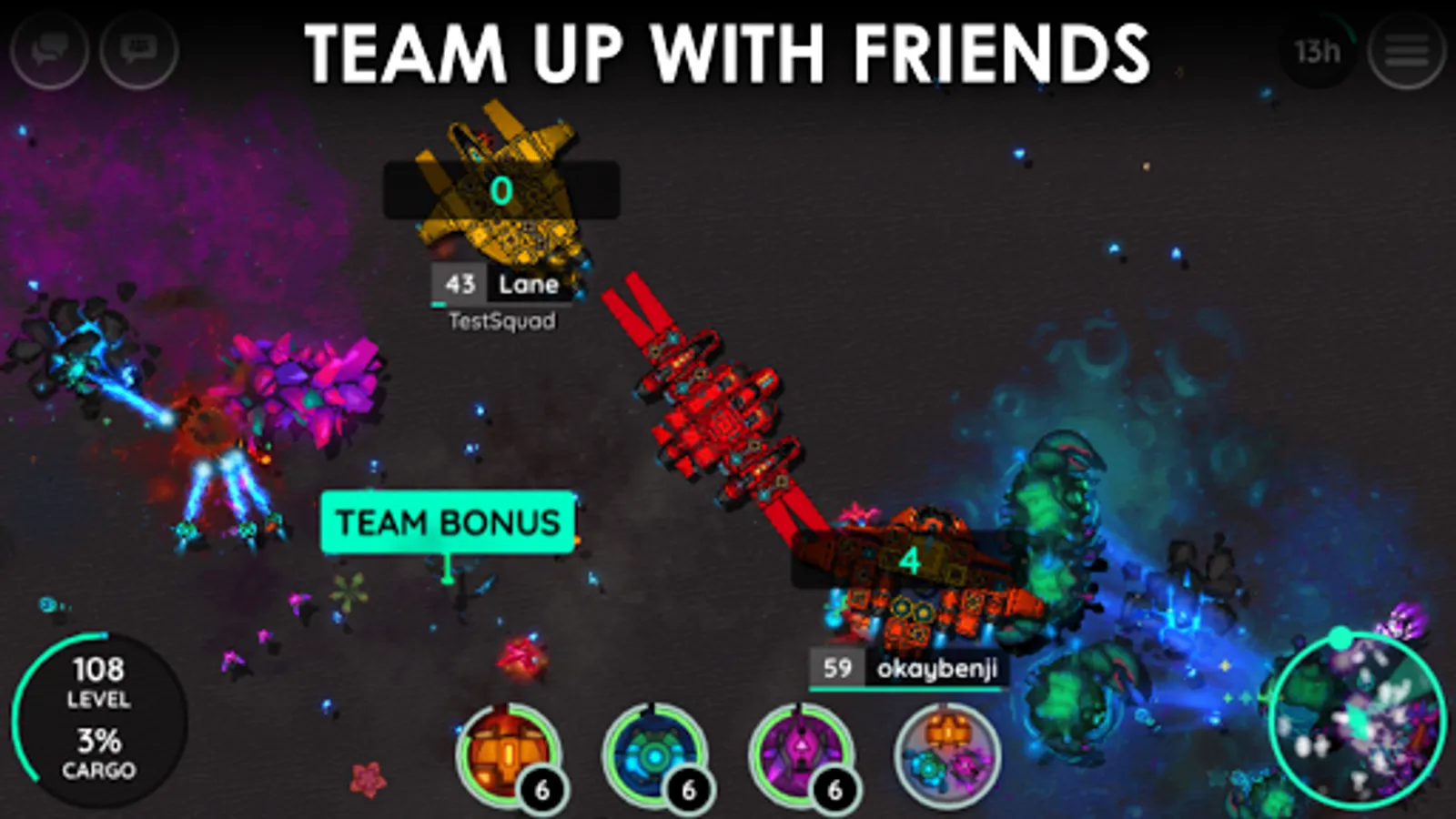It’s dangerous to go alone into the vast desert. Dangers are at every turn, so team up with friends to take on the most dangerous and valuable of guarded mines, bosses and more. Or, enter your best spaceships in the competitive Team Race mode where you and others compete for the most resources in an exciting race against time.