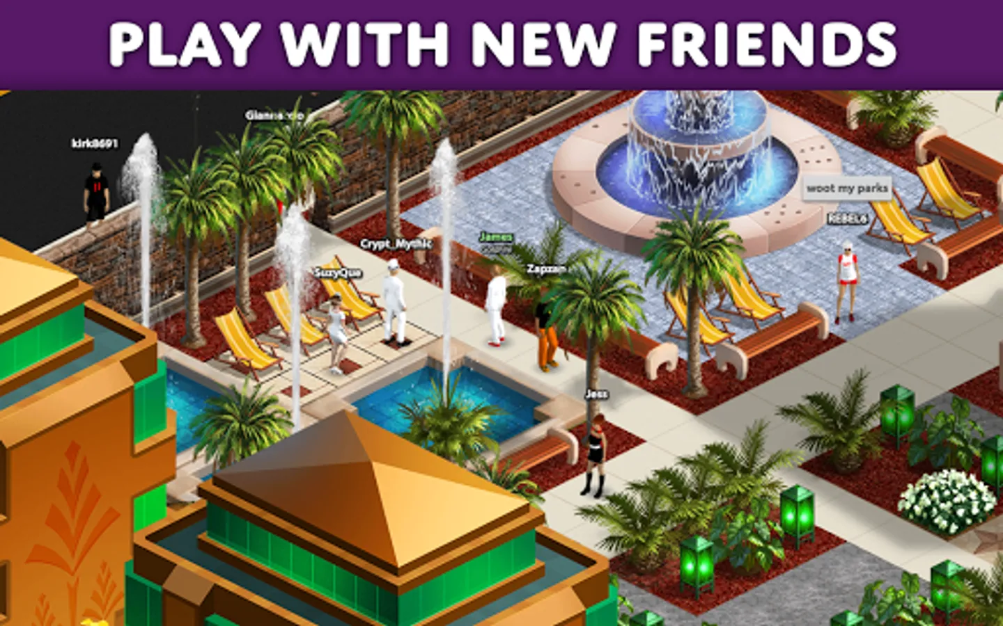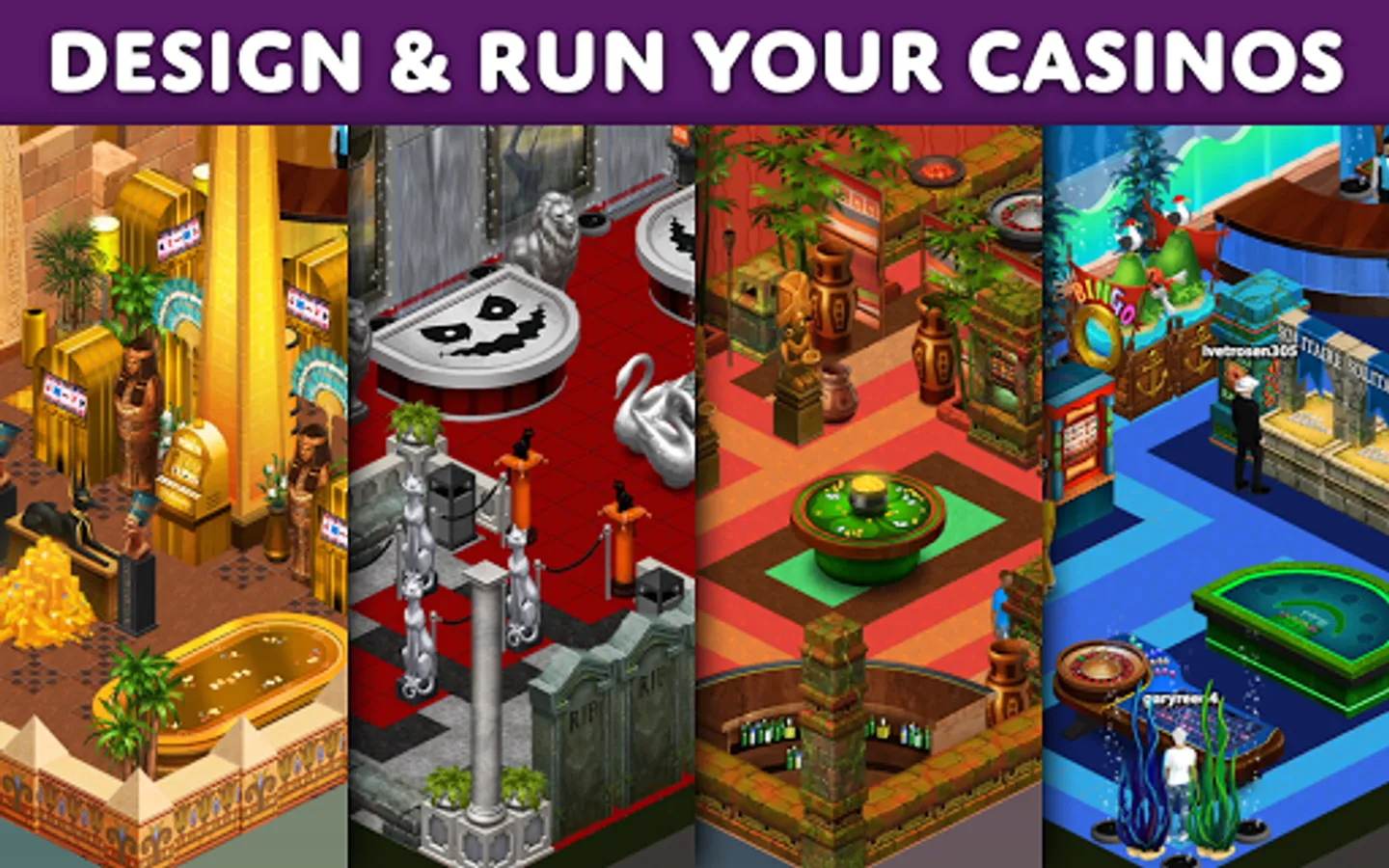 Play the tables or own the strip in this Vegas themed MMORPG virtual world that merges tycoon games, role playing (RPG), city building and casino games. Use your gambling winnings in casino games like casino slots, poker, blackjack, bingo, roulette, solitaire, video poker and other card games as you rise from janitor to casino tycoon -- all free to play!
