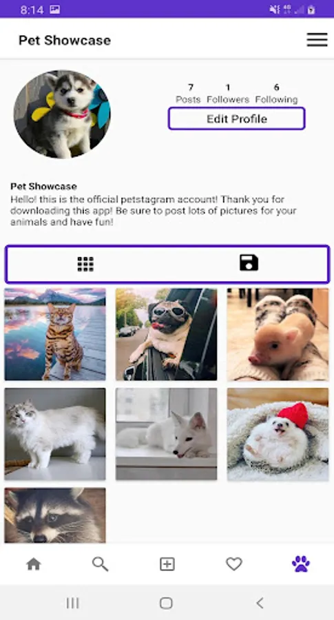Showcase your furry friends to the world! Pet Showcase is the social media app for your pets! Make your pet a profile and post pictures of them! Follow your friends and like there photos or leave nice comments on there pictures!