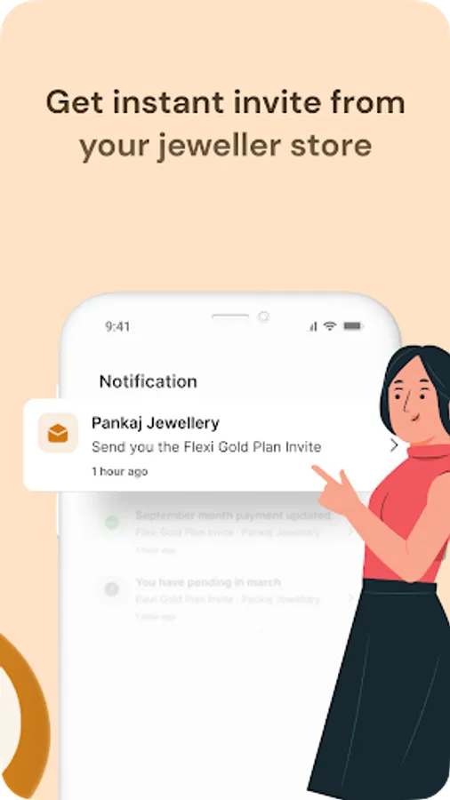 - Share your Reg ID / Phone Number with your jewelry store and join your gold saving scheme in our app