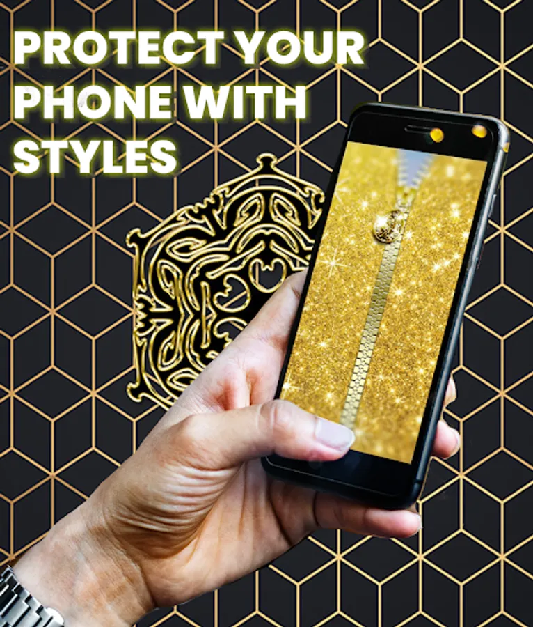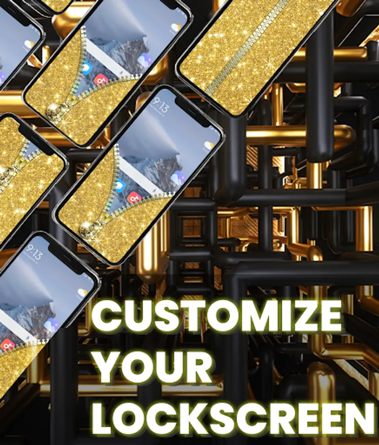 Discover a truly unique and customizable way to unlock your phone with the all-new Golden Lookscreen! Experience the freedom to choose your own wallpaper for the locker screen and device background, allowing you to personalize your device like never before. With just a simple click, you can change the zipper style, color, and design, creating the perfect combination that suits your style.