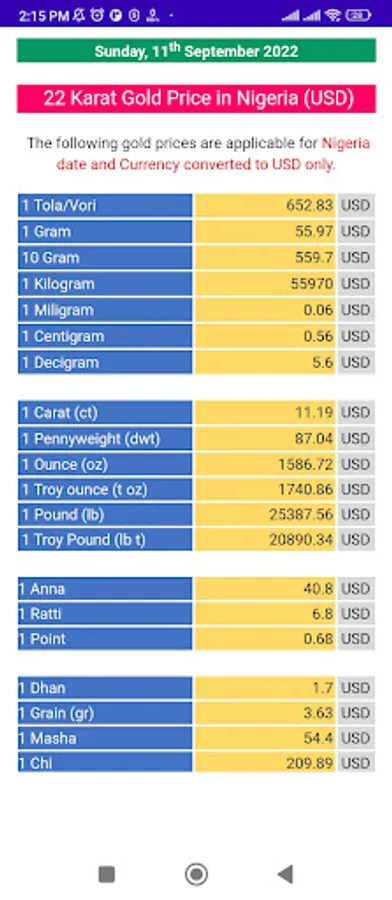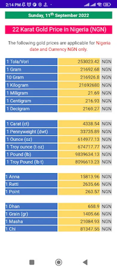 - View the Nigeria gold price in 25 different types of units in a single view.