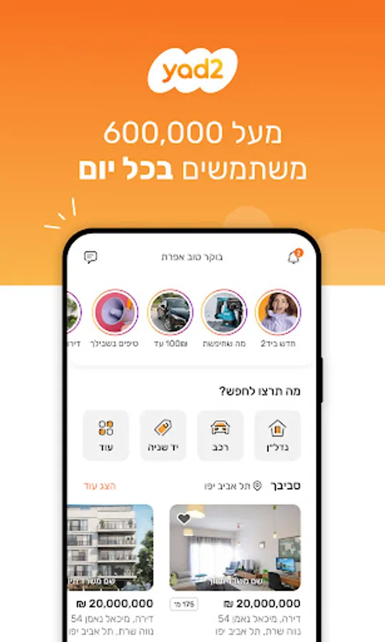 באפליקציה אפשר לקנות ולמכור דירות תיק תק, רכבים, מוצרי יד שנייה ועוד.