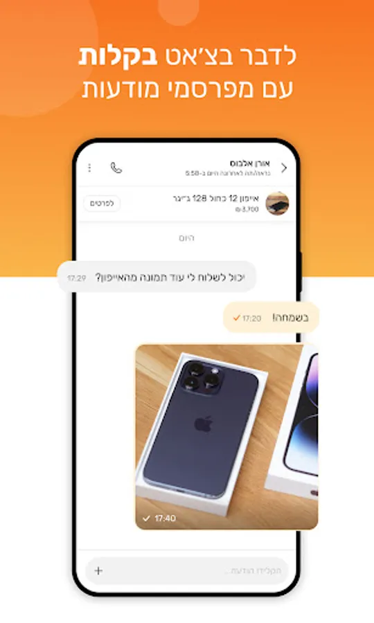 צ'אט - תתחילו את העסקה דרך האפליקציה עוד לפני השיחה