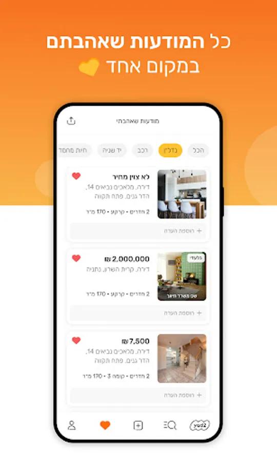 אפשרות לסמן מודעות שאהבתם היישר לאזור האישי