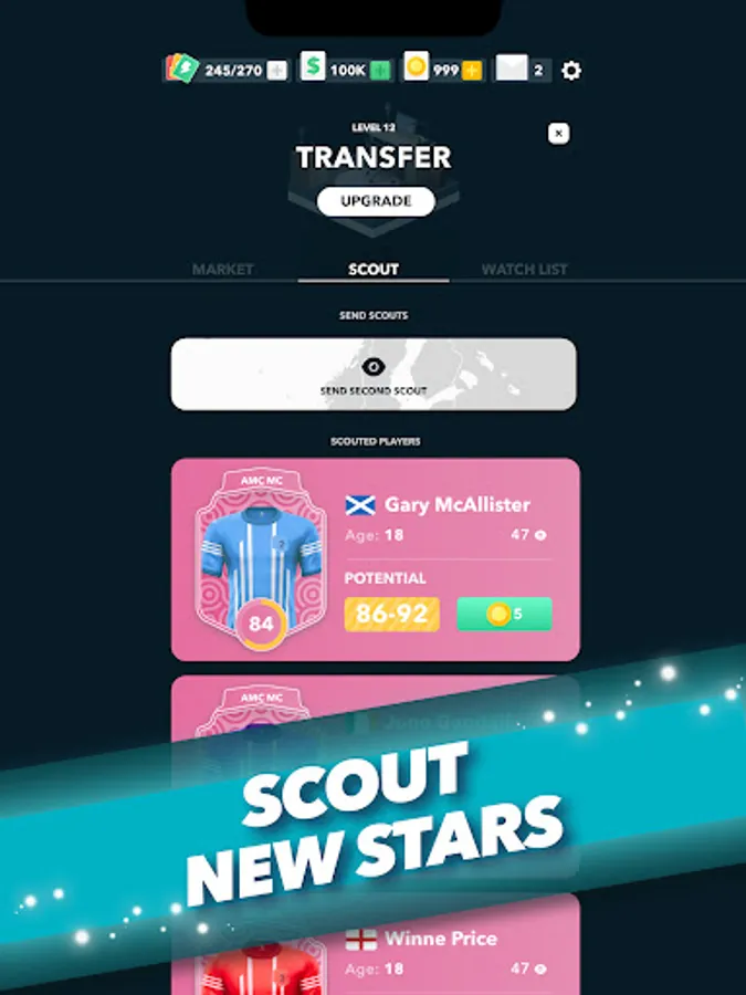 Build your champion eleven by scouting & developing youth footballers as well as trading for seasoned stars! If they don't give you top performances, send them to the transfer list!