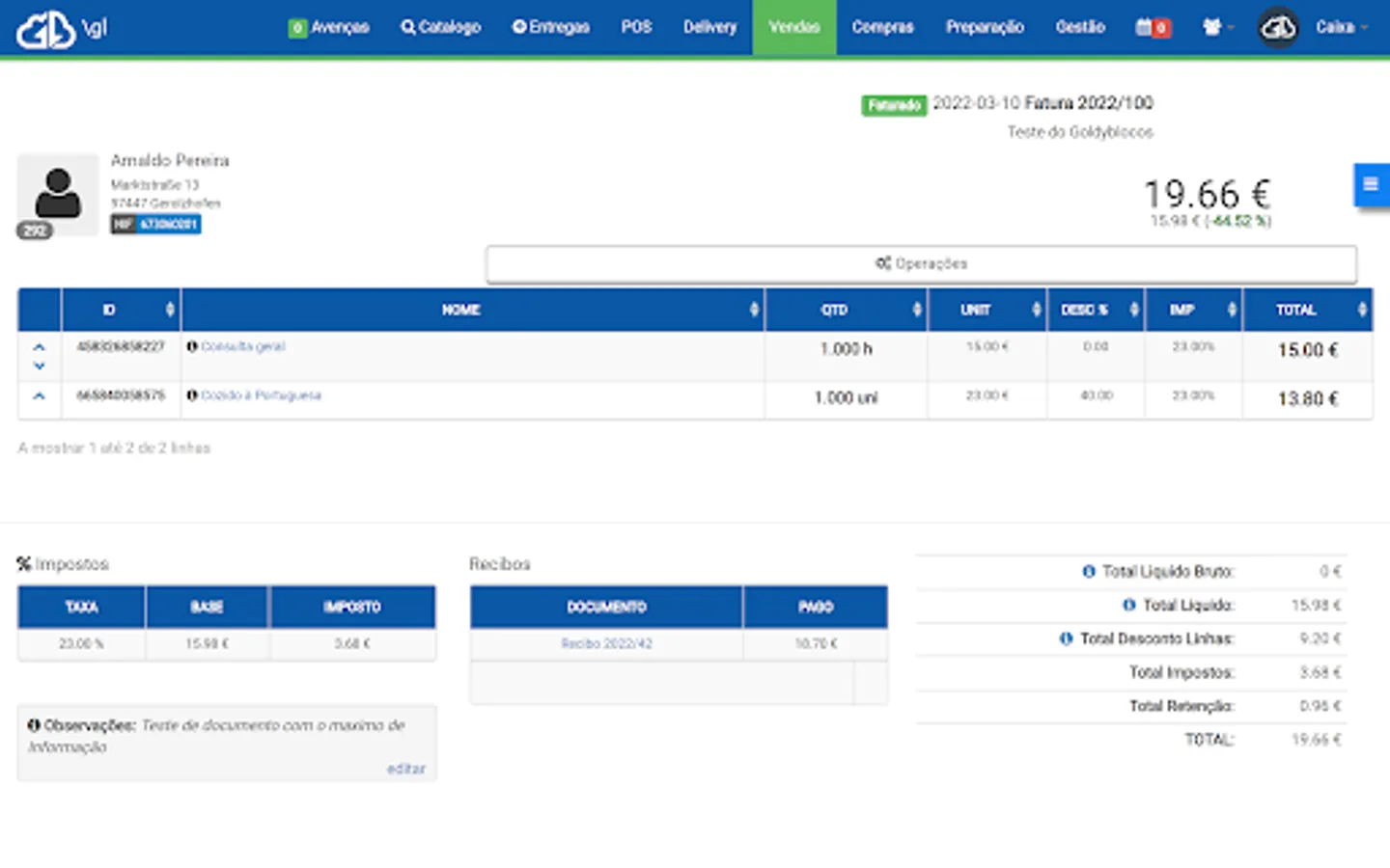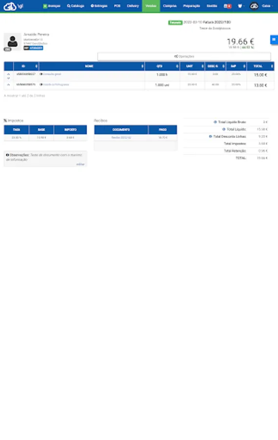 Our software includes everything you need to manage your business: sales, purchases, current accounts, stocks, reports, employee management, opening and closing cashiers, expiration notices, document preparation statuses and issuance of delivery notes. with communication to the Portuguese Tax Authority.