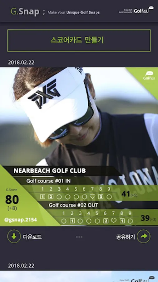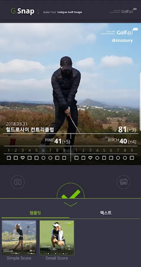 Create your own "unique" scorecard with photos taken from the field using G.Snap.