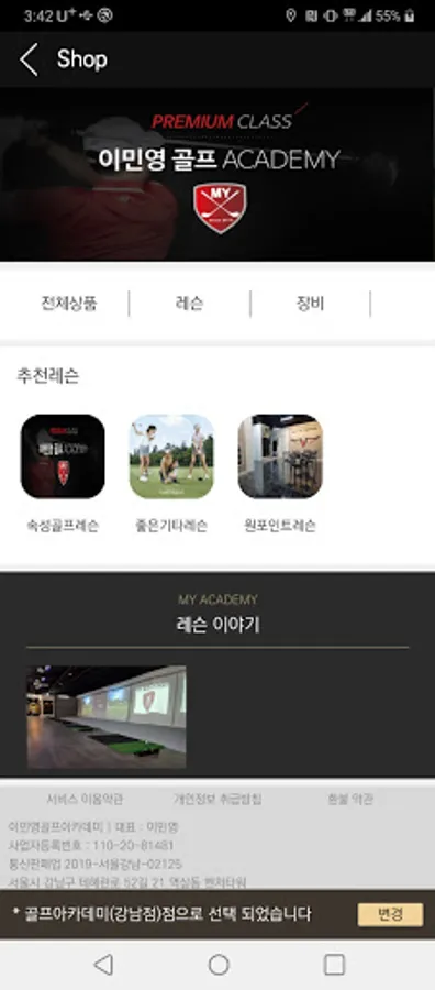 Golf class reservation, training program reservation, purchase and management of various programs