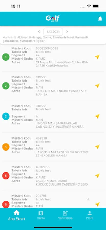 With the Golf Arena Sales Automation Application, visit plans can be followed, new points can be collected and details about the visits can be entered.