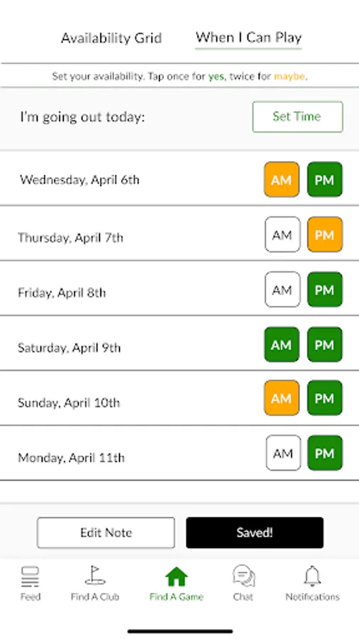 Post your availability and see the availability of all your friends and everyone at your favorite course(s) or club(s) —for free.