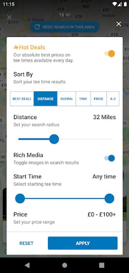 3. Find the very best tee times near your location with our "Current location" search