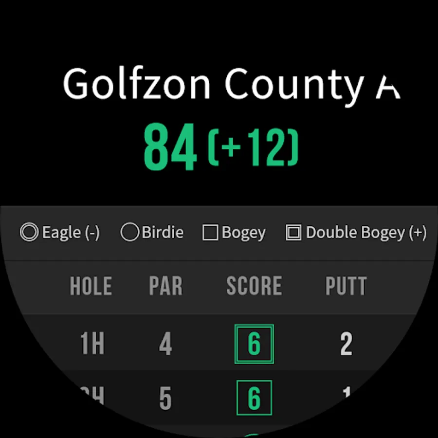 The watch round function is very powerful. It provides various features beyond golf GPS watches and continuously updates them. It implements the distance to the green, a powerful hole map function, a smart score pop-up, and a club distance recommendation function on the watch.