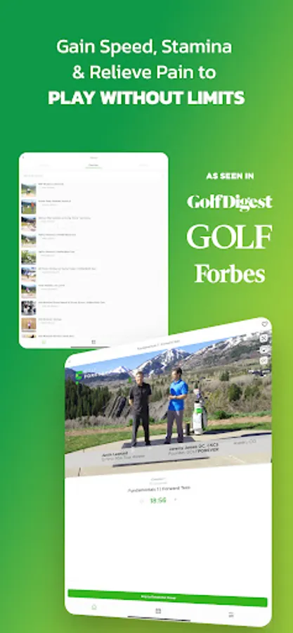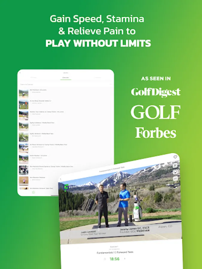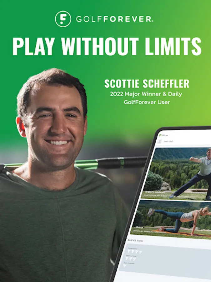GOLFFOREVER is the #1 SMART at-home golf training app - used by multiple top 40 PGA and LPGA pros including 2022 Masters winner Scottie Scheffler -to maximize clubhead speed, core strength, flexibility, and range of motion through our proprietary, personalized golf-exercise plan. Designed by top tour trainers and doctors to improve your body, relieve pain and avoid injuries with golf-focused fitness, GOLFFOREVER is a top-rated app that gives members lower scores and pain-free living on and off the golf course.