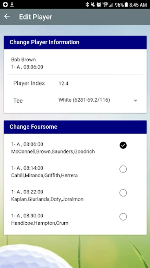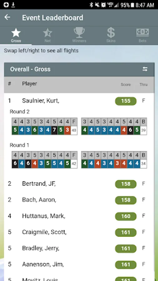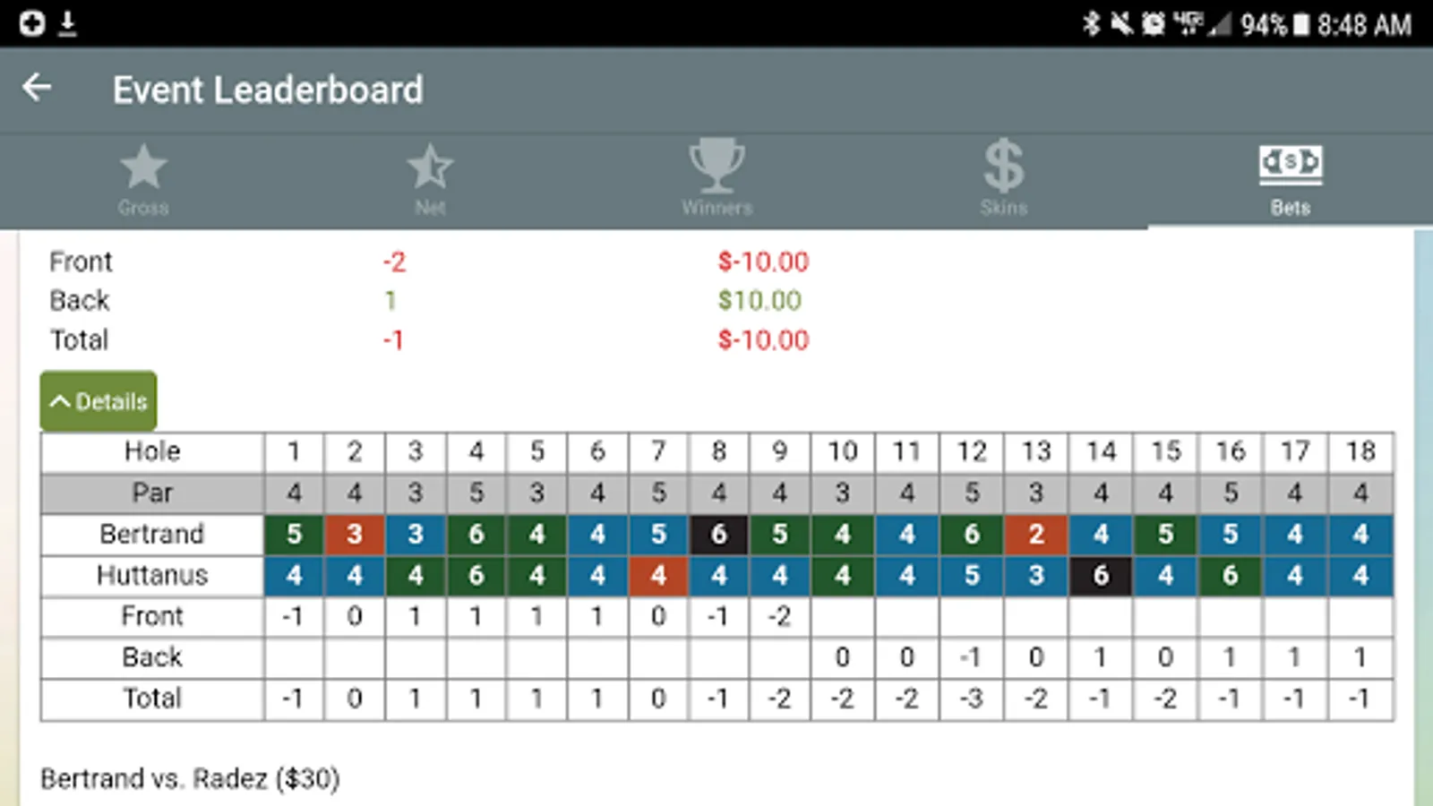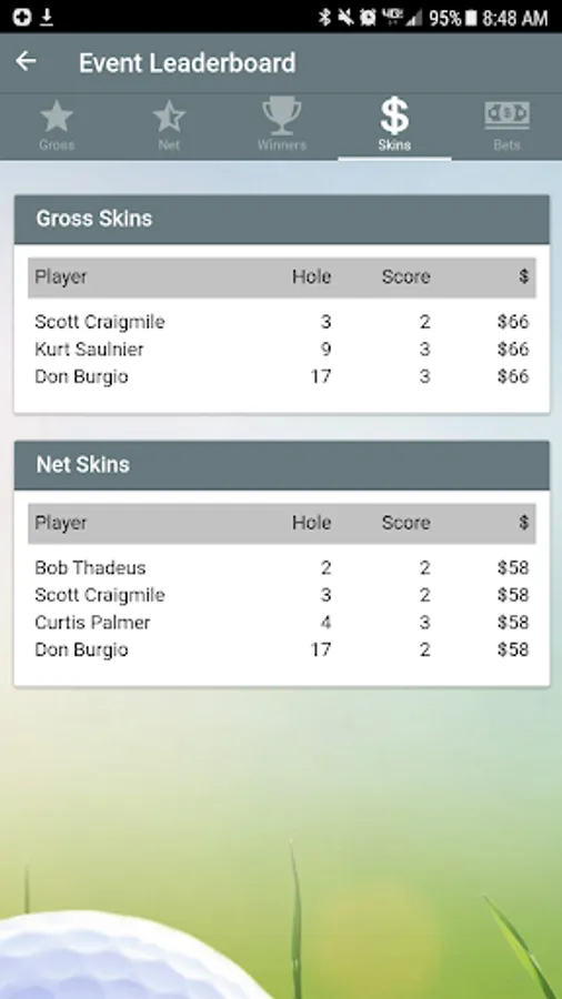 At the end of the match the software will display the amounts owed for each golfer.