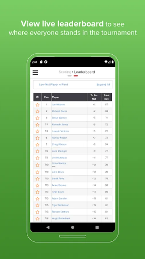 - Live scoring: managers and golfers have the ability to enter scores from their smartphones while out on the course.