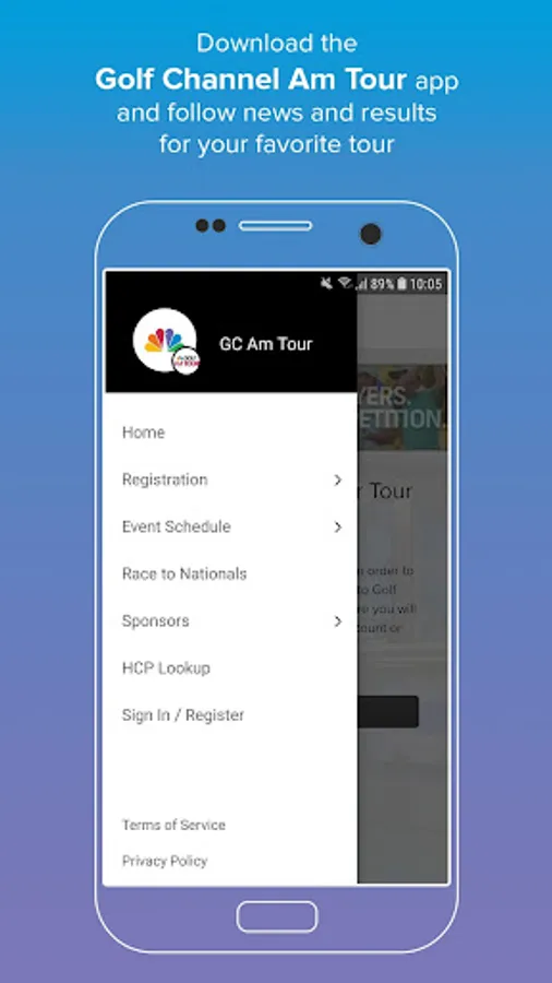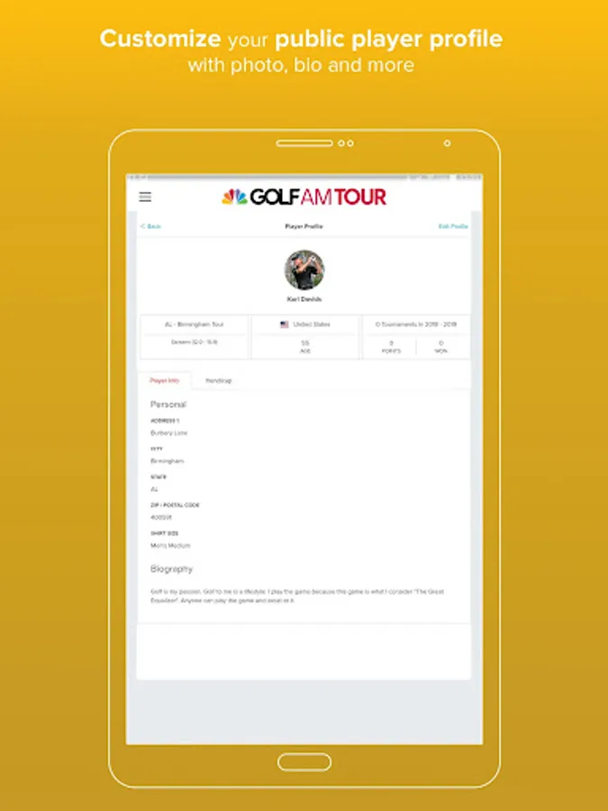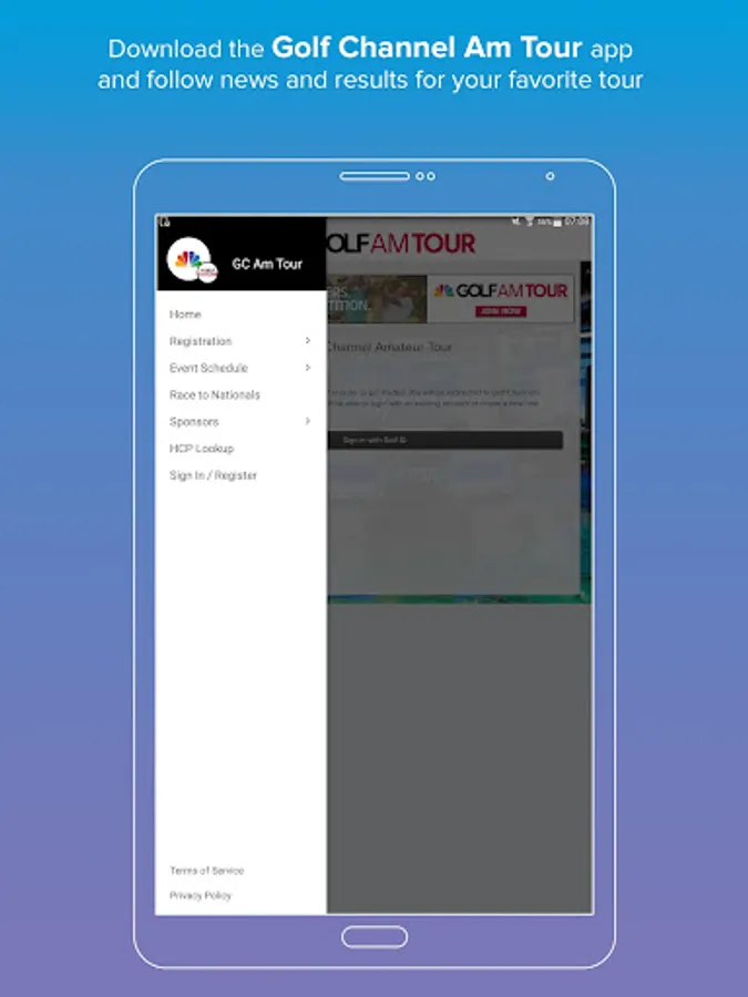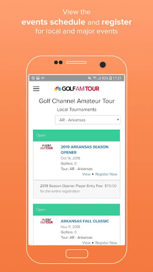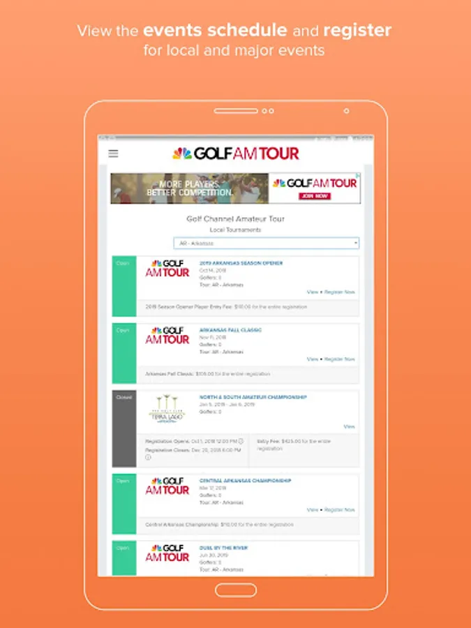 - Golfers can review the events schedule and quickly register for tour events and majors.