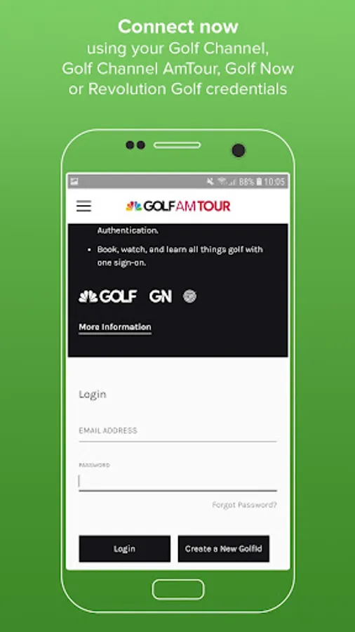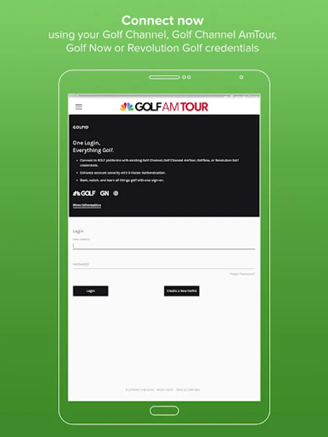 - Golfers can join the tour or connect using their Golf Channel, Golf Channel Golf Channel AmTour, Golf Now or Revolution Golf credentials.