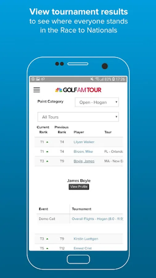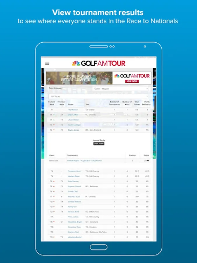 - Golfers can track their progress in the Race to Nationals and can monitor their performance stats in the current season.