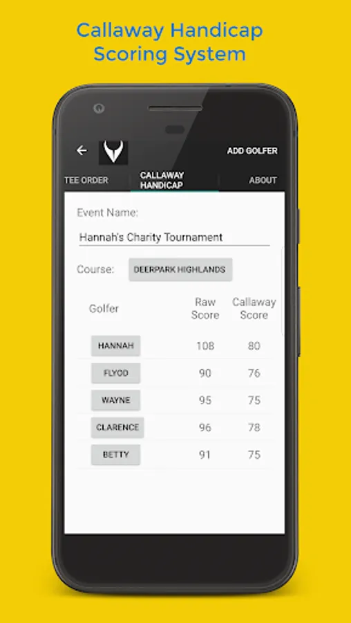 The Callaway Scoring Handicap System provides different skilled players with a "Callaway Score" which is a one-round handicapped score.