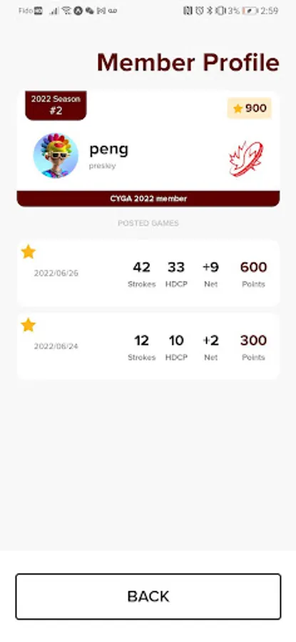 - Your photos, HDCP, the number of strokes, and points stored in your profile