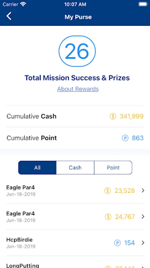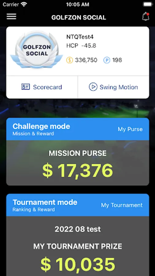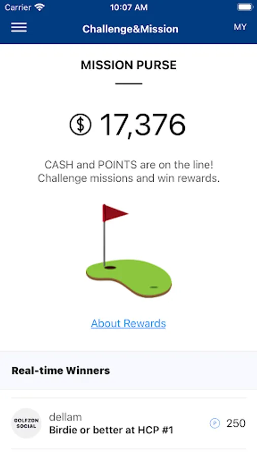 Challenge your golf skills and receive cash or point rewards through Missions such as Par 5 Albatross, Par 3 Hole-in-One, or Par 4 Eagle. You can exchange the cash prize to real money and use Points at GOLFZON SOCIAL shops. Rewards are redeemable only through GOLFZON SOCIAL app.