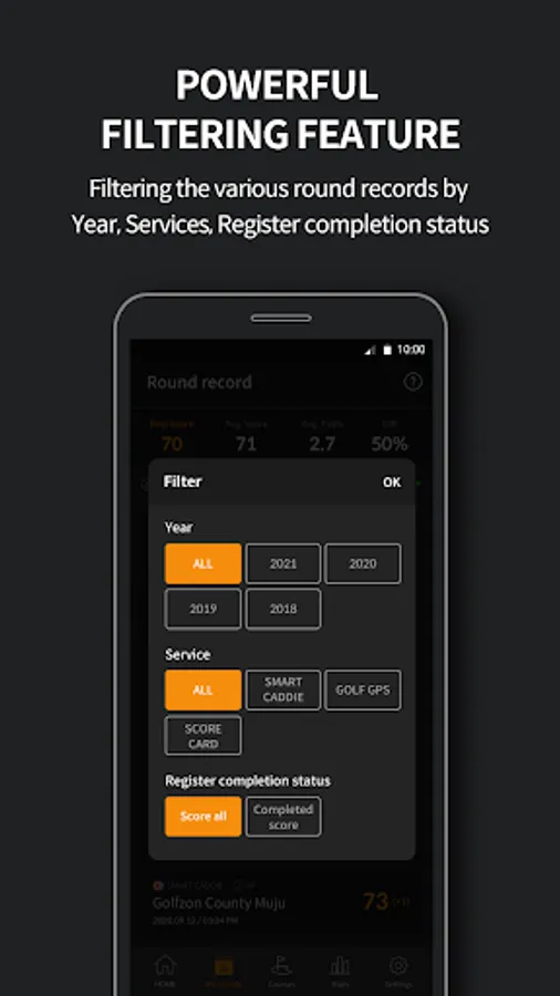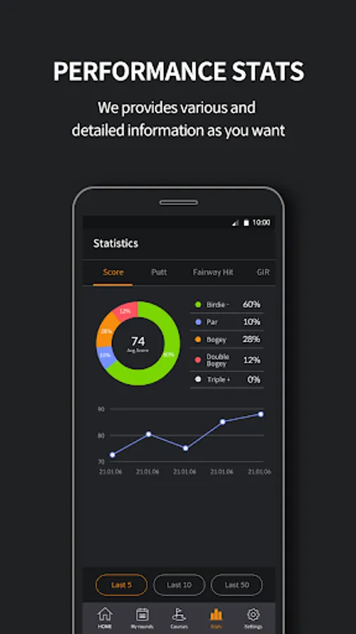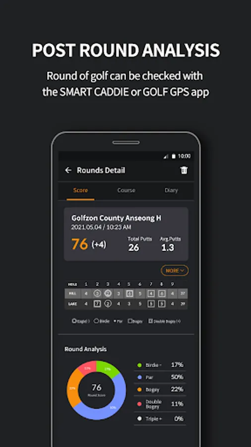 The existing features(GPS-Driven Distance Measurement) have been upgraded as well. From now on all records management are integrated into the GOLFBUDDY : GOLF GPS App. It provides detailed statistics of Score, Putt, Fairway Hit, GIR, Score/Par with a visual graph at a glance.