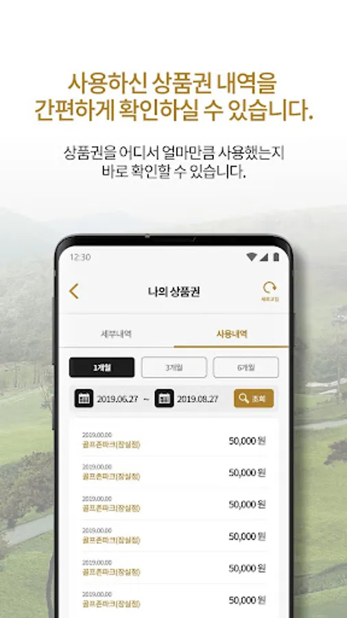 You can check all details of purchase, use, gift, conversion of mobile golf culture gift certificate.