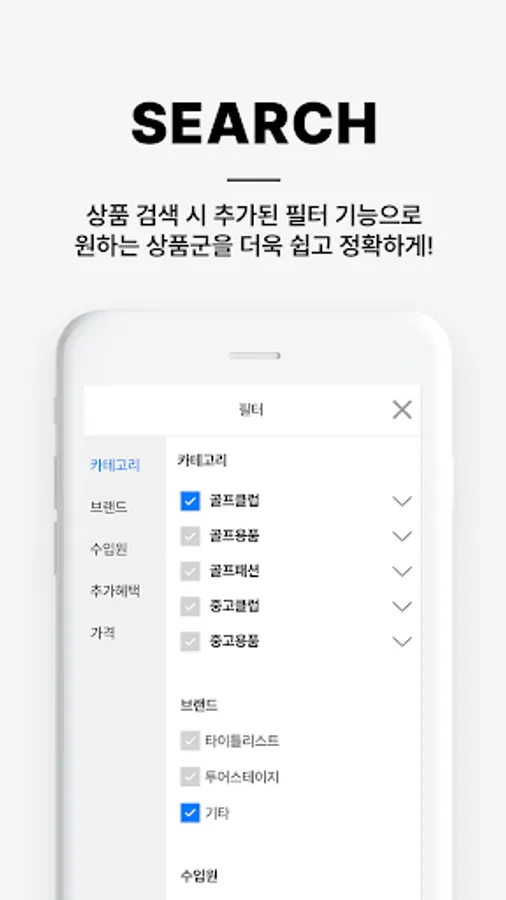 User-friendly design and speed improvement We have reduced the design elements of functional parts so that we can focus on the product itself, and the loading speed has been dramatically reduced by applying new technology. Experience convenient and fast golf.