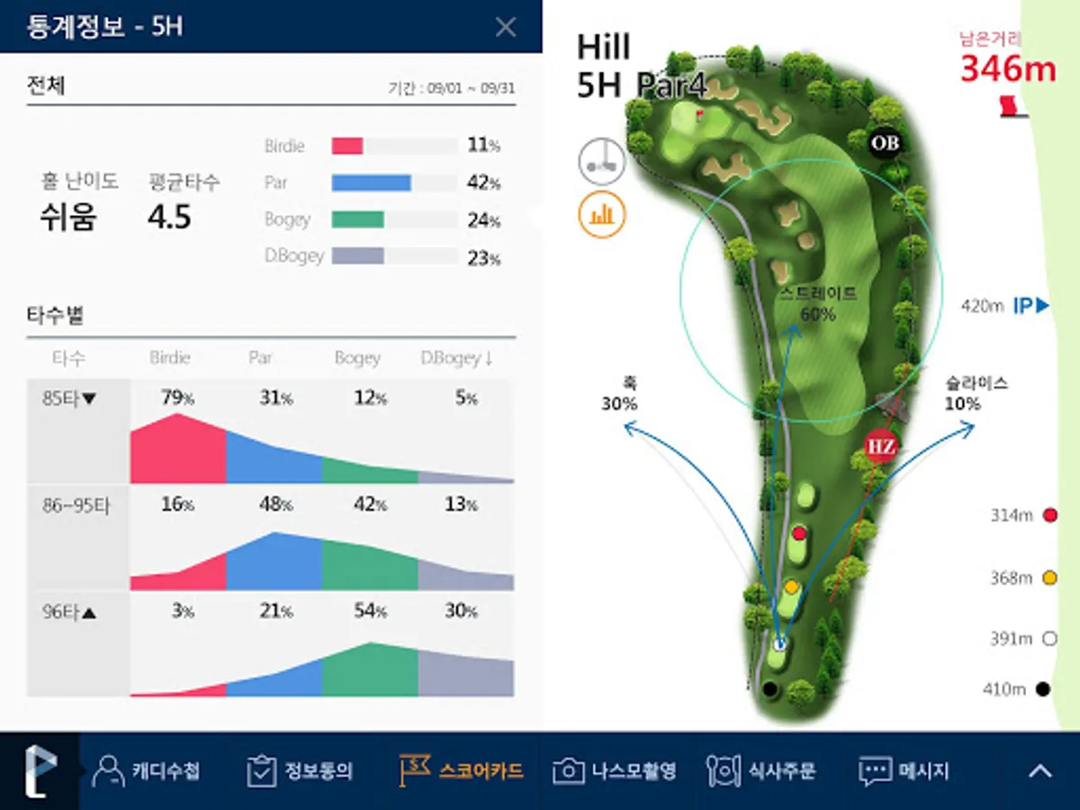 내장객의 스코어카드 및 나스모영상 제공을 기본으로 홀별 흥미롭고 유익한 라인딩정보를 제공함으로 유저들의 골프 라운딩의 실력향상에 대한 정보를 제공하는 서비스입니다.