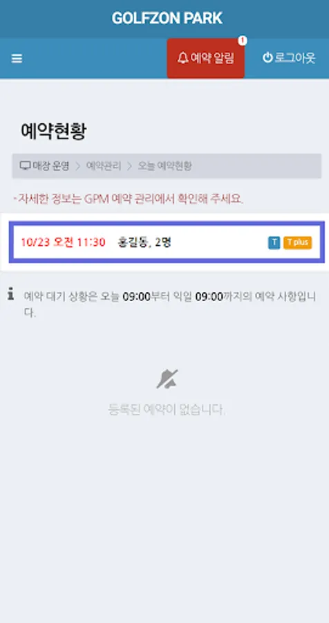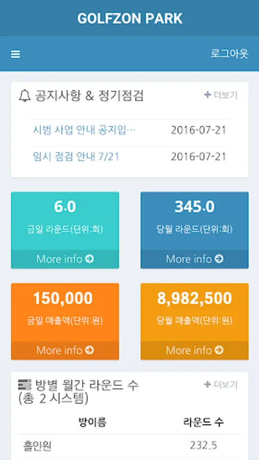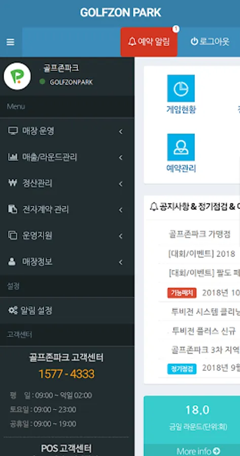 Golfzon Park Online service subscription information, store homepage information and announcement management function.
