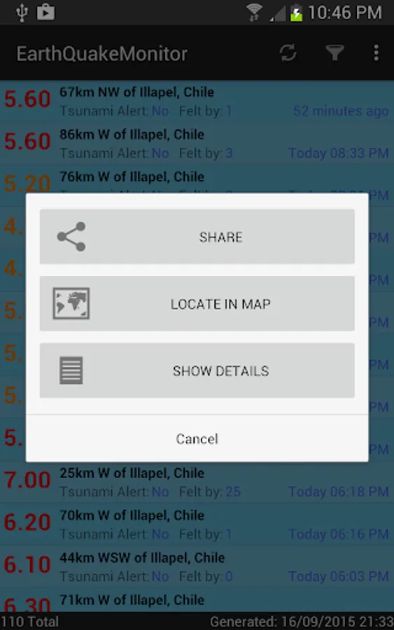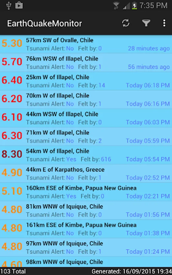 With earthquake monitor you can identify in an easy way the magnitude of the quakes by the colors used in the application.